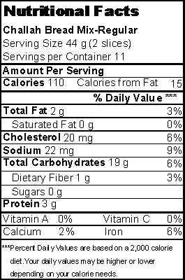 The rich heritage can be found in this mix. It is produced from selective Kosher ingredients that are blended together in a well-balanced complete bread mix.
